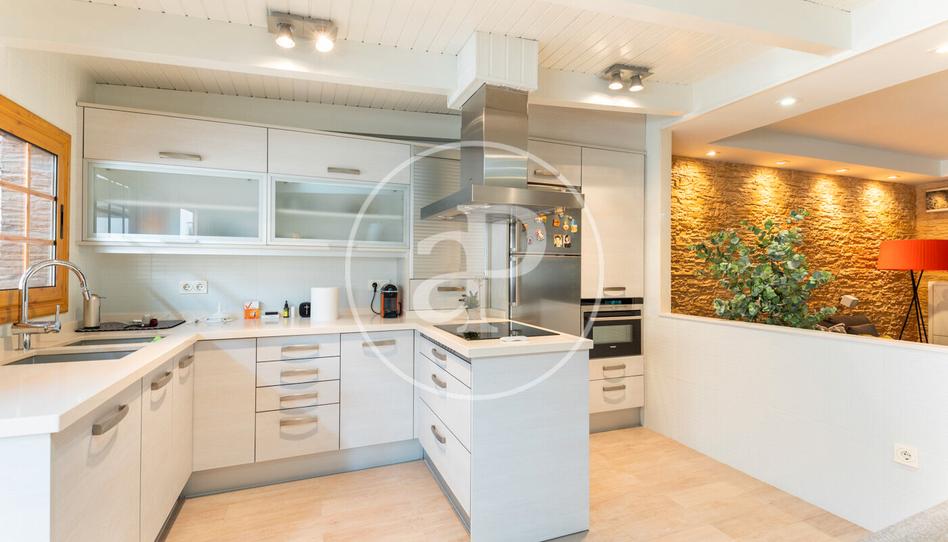 Se trata de una vivienda de dividida en tres plantas. En la planta baja nos encontramos con un comedor muy acogedor con una chimenea y airea condicionado por split, junto al comedor nos encontramos con la cocina abierta hecha de diseño, con los techos de madera con una ventana velux para mayor claridad, desde la cocina accedemos directo a una terraza con zona de chillout. En la misma terraza encontramos unas escaleras que nos conducen a una de las joyas de la vivienda un patio de 90m2 con una piscina privada.