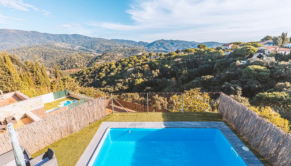 Casa pareada de 179 m² en parcela de 537 m², con 4 habitaciones, 2 baños con platos de ducha enrasados al suelo, garaje interior y exterior, piscina privada y espectaculares vistas al Montnegre en Urbanizacion Vistamar, Sant Cebria de Vallalta.