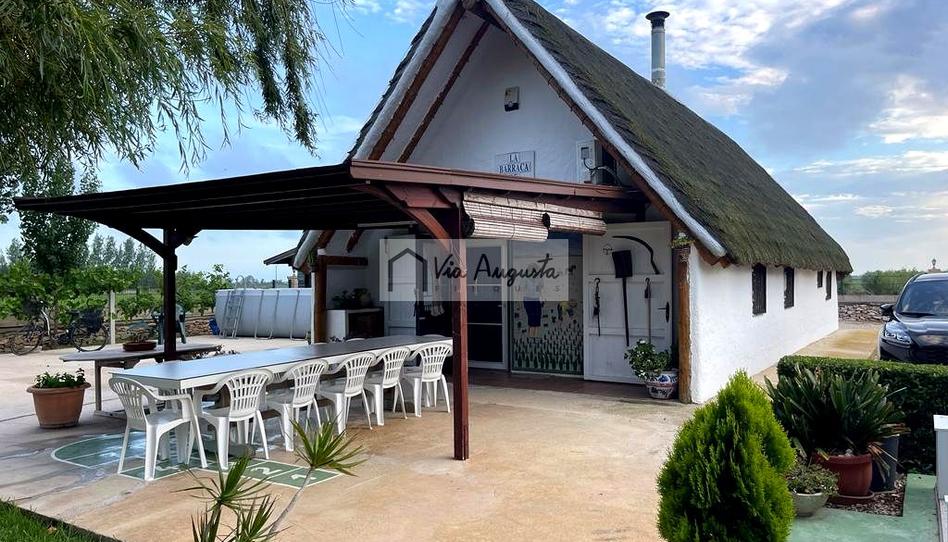 Barraca construida en el año 2007. Con una superficie de terreno de 4.000m2, 1200 de los cuales corresponden a la zona vallada de la barraca y los demás son huerto con 75 olivos en plena producción y una zona de árboles frutales. Con un extenso jardín y una construcción de 108m2 de vivienda distribuidos en una amplia cocina totalmente equipada abierta al salón comedor, una habitación de matrimonio con un baño incorporado, una habitación doble, un segundo baño y un altillo con otra habitación doble. Bajo las escaleras que dan acceso a la planta superior hay una despensa. En el exterior encontramos un gran porche, dos almacenes de madera independientes y una zona de barbacoa cerrada. La barraca cuenta con conexión a la red eléctrica y agua de red. Zona tranquila rodeada de arrozales.