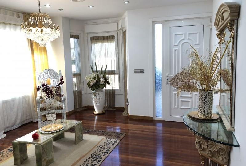 En esta planta está situada una cocina con su correspondiente dispensa, muy luminosa ya que tiene 4 ventanas realizadas en PVC blanco con cristales aislantes climalit planiterm solar, al igual que el resto de ventanas del chalet. Una sala de estar también con 4 ventanas, un baño con ducha y un gran salón comedor con chimenea, escaleras realizadas en piedra y madera de roble, ascensor que llega a todas las plantas, terraza y salida a la zona ajardinada donde poder realizar una piscina, zona de barbacoa y jardín. Todos los suelos de la casa son de tarima clavada en acabado roble, menos los baños, cocina y algunas partes de los sótanos que son de gres y cerámicas de la marca Porcelanosa. En la planta superior se encuentran situadas 2 habitaciones con sus correspondientes armarios empotrados y balcón, un baño con ducha y una habitación suite con vestier, y baño interno con bañera hidromasaje para 2 personas y una maravillosa terraza.En la última planta tenemos 2 dormitorios y un estudio con unas preciosas vistas a la catedral, y dos baños uno con bañera y otro con ducha. Aquí todas las ventanas son velux acabado roble y cristales climalit planiterm solar. Todas las dependencias de la casa constan de ventanas por lo que son muy luminosas. Las puertas son de madera en acabado roble en total armonía con el resto de la casa. Consta con hilo musical, calefacción central, con radiadores en aluminio blanco y gas natural.En el semisótano tenemos un salón, un baño, la sala de calderas, lavandería, el gimnasio y la bodega.