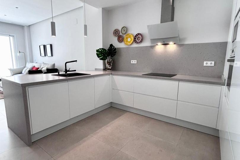 La cocina, de diseño y completamente equipada, se integra de forma natural con el salón-comedor, aportando amplitud y fluidez a la vida diaria.