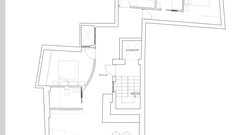 La vivienda de 105 m2 construidos consta actualmente de salón, cocina, tres habitaciones y dos baños, aunque está habitable, necesitaría de una reforma integral. (actualmente se está reformando íntegramente y su precio sería de 450.000 €). Se quedaría en tres dormitorios y dos baños.