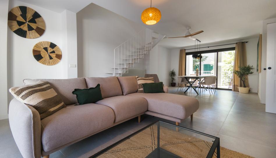 El dúplex cuenta con tres dormitorios amplios y luminosos, cocina de diseño equipada por el prestigioso estudio Abitarum de Palma con electrodomésticos Siemens, placa de inducción Bora con extracción central, grifería Hans Grohe y una gran isla central. Dispone de sistema de climatización por aerotermia, aire acondicionado por conductos con bomba de calor y calefacción mediante radiadores de diseño con control individual por estancia. La carpintería interior es de alta calidad, con puertas macizas lacadas en blanco, armarios empotrados revestidos interiormente y vestidor abierto. El baño principal ofrece un diseño moderno con doble lavabo, bañera exenta y plato de ducha de gran formato, además de contar con grifería empotrada de bajo caudal y sanitarios Duravit. Los pavimentos son porcelánicos de gran formato con tratamiento antideslizante en exteriores, y la vivienda se entrega con falsos techos, pintura lisa y acabados de primera calidad.