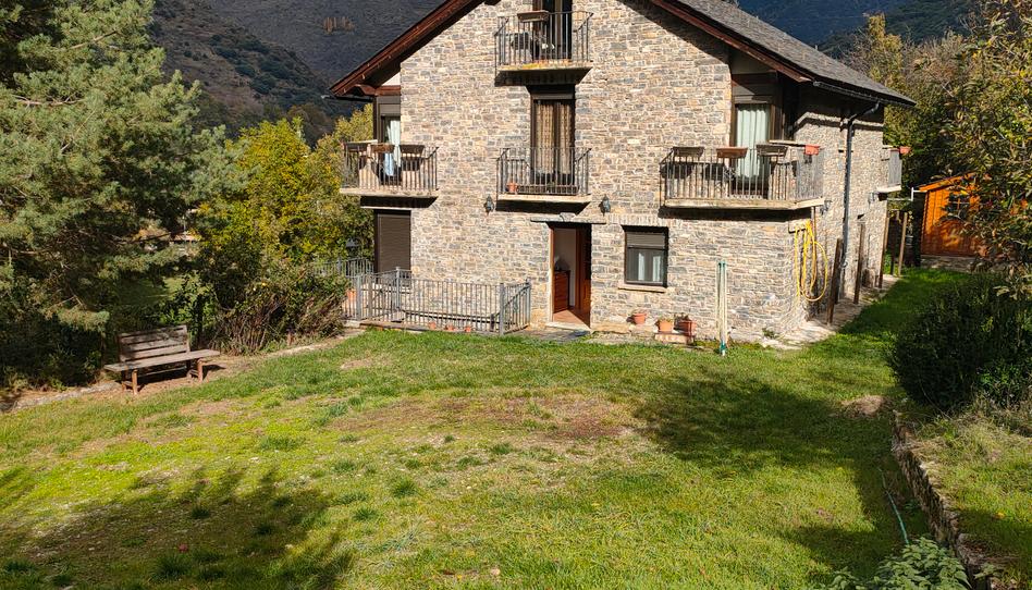 Preciosa casa en Altron a 5 km del pueblo de Sort en un paraje rodeado de naturaleza y tranquilidad en el Valle de Àssua próximo a las pistas de esquí de Port AIné, a 1 hora de Andorra y de Baqueira Beret La casa tiene 278 metros construídos repartidos en 3 plantas.En la primera planta encontramos un salón comedor con estufa de pelet y radiadores en todas las habitaciones que funcionan con propano con salida a amplia terraza esquinera,3 habitaciones dobles completas, 1 habitación individual y un baño con ducha y cocina con zona de office. En la segunda planta 4 habitaciones dobles con 4 baños todas las habitaciones son suite. 1 cocina pequeña y un pequeño despacho. La última planta es una buhardilla polivalente que hasta la fecha ha sido la zona de juegos de los pequeños de la familia. Esta casa permite que puedan convivir independientemente 2 familias pero compartiendo jardín. Calefacción a propano en toda la vivienda con termostatos independientes, casa en muy buen estado de conservación. Su ubicación un poco elevada por encima del resto permite unas vistas e intimidad únicas, rodeada de naturaleza , y con un jardin que se confunde con el bosque hacen que esta propiedad sea única por ubicación y estado. Armarios empotrados, carpinteria de aluminio, bien aislada Destacar que también hay una zona de almacen en la planta inferior de 152 metros donde los propietarios regentaban una quesería