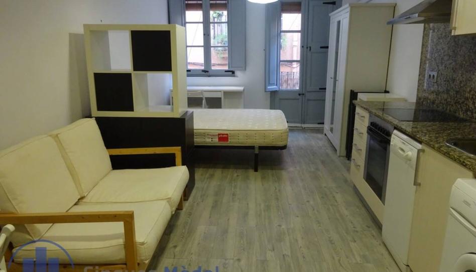 Estudio de 45m2, muy céntrico, debido a su cercanía a la Plaça del Forum y la Catedral. Dispone de una habitación, salón, cocina en una misma estancia y un baño completo. Además el piso es completamente exterior por lo que es muy luminoso todo el día ya que cuenta con un balcón.