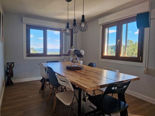 Azabache vende atractiva vivienda en urbanización adosada a Santiago que disfruta de todos los servicios incluyendo autobús urbano cada 20 min. Hablamos de más de 140 m2 en formato dúplex en los que encontramos en la planta principal dos baños completos, dos dormitorios, salón-comedor y cocina independiente, dejando para la parte alta otro baño completo con otros dos dormitorios. Vivienda reformada que por altura y ubicación disfruta de inmejorables vistas al pico sacro. Cuenta con plaza de garaje y trastero en edificio con ascensor. Calefacción, climatización y agua caliente por aerotermia. Vivienda exterior muy luminosa ideal para una familia que quiera disfrutar de un entorno tranquilo rodeado de zonas verdes pero a un paso de la ciudad. Llámanos para ampliarte la información y/o gestionar una visita.