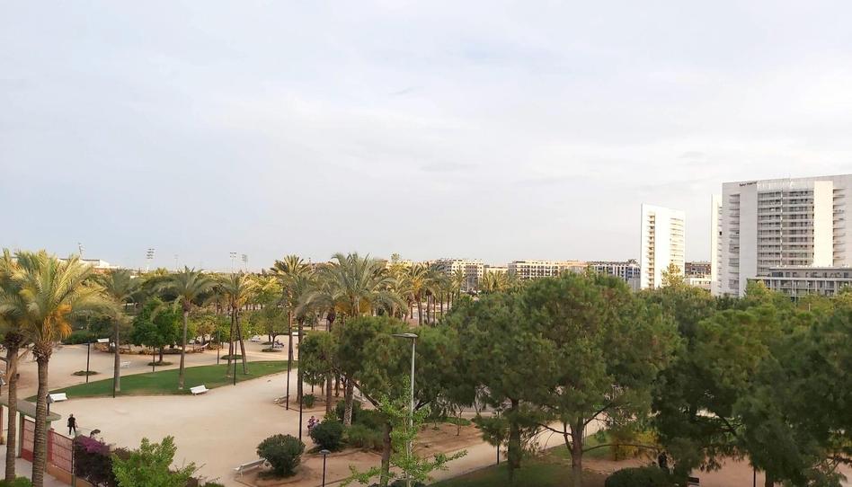 El salón-comedor es amplio y acogedor, con salida directa al balcón que ofrece vistas abiertas al Parc Central, un entorno verde y tranquilo que proporciona luz natural casi todo el día.