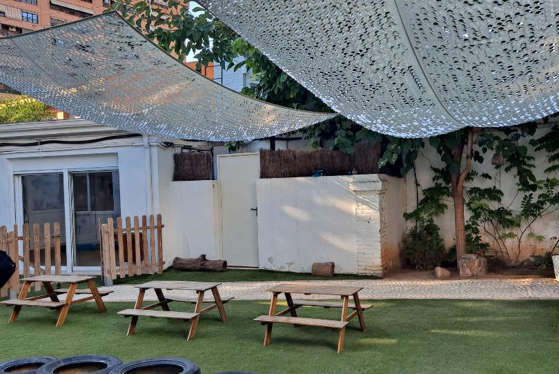 Gran patio descubierto ajardinado