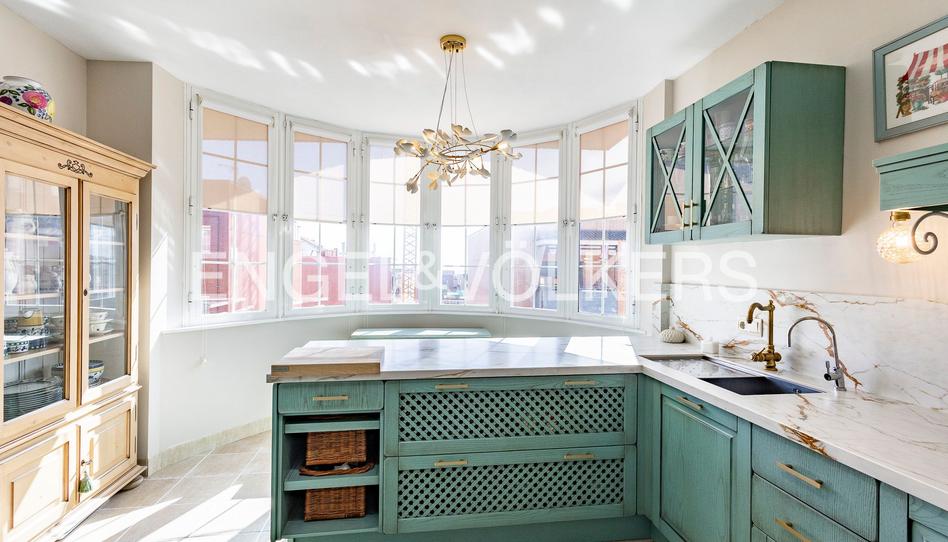 La amplia cocina, de belleza singular, está bañada de luz a través del gran mirador acristalado. Cada elemento de este espacio único y especial ha sido cuidado con esmero. La encimera, la grifería, los preciosos muebles con gran espacio de almacenamiento, la barra para desayunar, las lámparas hacen de esta cocina un espacio funcional y estético que proporciona bienestar y alegría ¡El calor de hogar está garantizado!