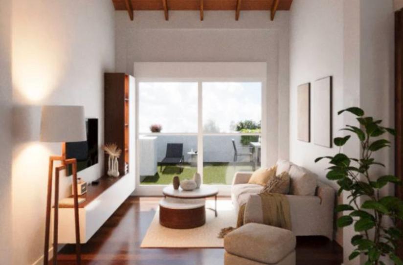 Vivienda muy soleada con gran terraza de 74 m², 2 dormitorios, 1 baño, salón comedor-cocina.