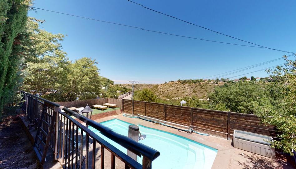 Junto a la piscina, hay un solárium, un porche con barbacoa, y un baño-vestuario que da servicio a la piscina; además la parcela también incluye una zona de aparcamiento, un gran garaje con espacio para varios coches y un pequeño taller para revisiones o reparaciones.
