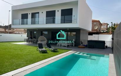 Situado en Calabardina, este magnífico chalet independiente para vivir todo el año en una zona tranquila muy cerca de de Águilas. La vivienda es completamente independiente y está orienta a sur y es muy luminosa a todas las dependencias en que se distribuyen sus mas de 200 m2 de vivienda Una vivienda abierta, tanto en la parte baja del inmueble, que se compone de un gran salón comedor con cocina abierta e isla al centro, baño completo y un fantástico porche al que se accede desde la zona de salón-comedor, como desde la cocina. A la planta primera entramos por medio de unas escaleras voladas de cristal, que les proporcionan mucha luz y dan una mayor sensación de amplitud. al llegar a la primera planta nos encontramos 4 amplios dormitorios, 2 baños completos y una terraza, a la que se accede desde todos los dormitorios. En la planta alta tenemos la terraza solarium que tiene unas magníficas vistas desde cualquiera punto, ya que tiene barandilla de cristal. La vivienda construida con altas calidades y con estilo modernista, con líneas rectas y techos altos, grandes ventanales de aluminio con herraje de 3 puntos y cristales de seguridad, 4 splits de aire acondicionado frío/calor en la zona de salón comedor, cuarto de juegos, pasillo y dormitorio principal, cocina amueblada y equipada. En el jardín o terraza exterior de éste se encuentra ubicada una estupenda piscina de agua salada, con sistema desbordante y agua climatizada por las placas solares de la vivienda y un magnífico jacuzzi.
