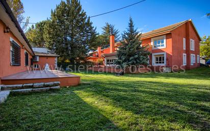 A tan solo 5 minutos andando de la estación de tren de Torrelodones y a 7 minutos de la zona comercial de la Colonia, se encuentra este chalet único, de nueva construcción, a estrenar, donde el lujo y la comodidad conviven en plena armonía. En la parcela de casi 1.000m2 hay 2 casas, la vivienda principal de 450m2 y la casa de invitados de 125m2. La casa principal, amplía, luminosa y con las mejores calidades, consta de 2 plantas, pero se puede hacer vida en 1 sola planta. En la planta baja encontramos un amplio hall de entrada, 1 aseo, salón principal de 70m2 con chimenea y salida al exterior, cocina office con mucha capacidad de almacenaje, cocina de gas y vitrocerámica en isla y despensa. Los muebles de cocina de alta calidad. También se encuentra en la misma planta el dormitorio principal en suite con baño (ducha y bañera), con despacho y vestidor. En el exterior hay un amplio porche. En la planta de arriba hay 3 dormitorios, 2 de ellos comunicados por los baños, pero cada uno con su propia zona de baño y de vestidor. El tercer dormitorio es en suite con baño. También hay una zona de lavado y un segundo salón abierto de unos 35m2 muy luminoso. Construcción con materiales, sanitarios y acabados de primera calidad, carpintería exterior de PVC con doble acristalamiento “climalit”. Todos los dormitorios disponen de amplios armarios empotrados y la calefacción es por suelo radiante. Tiene instalación de placas solares. La segunda casa, la de invitados, consta de una sala de juegos independiente, salón de 20m2 con chimenea, 2 baños completos, cocina amueblada, 2 dormitorios y un trastero. Aire acondicionado con bomba de calor en salón, habitaciones y despacho. Bonita parcela ajardinada con mucho espacio para aparcar. Amplio porche con zona de estar, pozo y fuente.