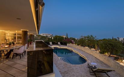 Situada en la exclusiva y tranquila zona residencial de La Quinta, esta increíble villa diseñada por Ángel Taborda, goza de una ubicación privilegiada y vistas al entorno natural. Una verdadera obra maestra del diseño arquitectónico que hace que esta villa destaque entre sus competidoras ofreciendo una experiencia completamente única a sus residentes. La calidad de los materiales y acabados utilizados en toda la casa y los altos estándares de construcción hacen de esta villa una representación de lujo y estilo atemporal. Esta moderna villa de 5 dormitorios en venta se encuentra en una orientación suroeste beneficiándose de la máxima entrada de luz solar durante todo el día. Diseño contemporáneo, arquitectura limpia y amplitud son las palabras que mejor describen esta impresionante villa. En la planta de entrada se encuentra el aseo de invitados, cocina moderna, sala de estar abierta y comedor. Acceso directo a la terraza que es realmente excepcional con un rincón de desayuno orientado al este y una terraza cubierta que ofrece opciones de comedor y tumbonas para disfrutar. Bajando unos escalones se llega a la maravillosa zona de la piscina. La escalera de caracol en el pasillo es la característica principal de la entrada. La planta superior se destina al increíble dormitorio principal que dejará boquiabiertos a los visitantes con su gran diseño, vestidor e impresionante cuarto de baño en-suite con una amplísima ducha. El nivel inferior de la casa cuenta con un enorme espacio (alrededor de 400 metros cuadrados) con una segunda sala de estar, comedor y una excelente bodega. Hay cuatro grandes dormitorios en este nivel, todos con salida a un encantador patio. Tres de los dormitorios tienen baño en-suite y uno de ellos tiene un baño separado. También hay un lavadero en esta planta. Si lo que busca es una vida espaciosa, no hay nada mejor que esto. Lo que es tan fantástico acerca de esta villa es las infinitas posibilidades para crear más dormitorios si es necesario, ya que hay mucho espacio para crear más habitaciones si es necesario. Además, esta villa tiene excepcionales opciones de aparcamiento con un gran garaje y cochera grande donde caben varios coches. Esta casa de calidad es una oportunidad extraordinaria y rara para aquellos que buscan una casa con un amplio espacio en un barrio tranquilo de primera que todavía está cerca de todas las comodidades. En un corto trayecto en coche se puede llegar a supermercados, restaurantes, vida nocturna, playas, tiendas y mucho más. La Quinta está bien comunicada con las zonas cercanas de Nueva Andalucía, Marbella centro y San Pedro, ofreciendo un sinfín de servicios para mantenerle entretenido durante todo el año. Una villa espaciosa y moderna en venta en una ubicación privilegiada.