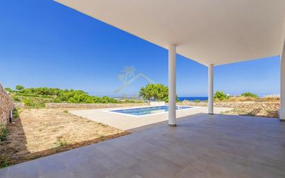 Fantástico chalet unifamiliar de nueva construcción con un diseño totalmente vanguardista y estratégicamente orientado para poder disfrutar de las magníficas vistas al mar. La propiedad tiene unos 160 m2 construidos sobre un solar de 800 m2 y está ubicado en la nueva zona de Coves Noves, a tan solo cinco minutos en coche del campo de Golf de Son Parc y a diez minutos andando de la playa de Arenal d’en Castell. La villa consta de 3 dormitorios, 3 baños, un amplio salon-comedor, cocina y lavadero. Todo con acabados de materiales de alta calidad y aire acondicionado. En el exterior hay zona de barbacoa, terrazas con vistas al mar, jardín, piscina privada y area de aparcamiento. Coves Noves| New development Fantastic newly built detached villa with a totally avant-garde design and strategically orientated to enjoy the magnificent sea vews. The property has about 160 m2 built on a plot of 800 m2 and is located in the new area of Coves Noves, only a five-minute drive from the Son Parc Golf course and a ten-minute walk from the Arenal d´en Castell beach. The villa consists of 3 bedrooms, 3 bathrooms, a large living-dining area, kitchen and laundry room. All finished with high quality materials and air conditioning. Outside there is a barbecue area, terraces with sea views, garden, private swimming pool and off street parking.
