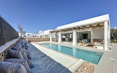 Lucas Fox presenta esta magnífica villa de alto standing en venta en Arenal d'en Castell recientemente construida. La villa cuenta con un diseño minimalista y con toques rústicos y elementos modernos, con el fin de ofrecer el máximo confort. La casa se asienta sobre una parcela de más de 600 m². La vivienda ofrece 160m² más 30m² de un elegante porche que conecta la zona de estar de la vivienda con la zona de piscina mediante un gran ventanal con puertas correderas. Todo el interior goza de muchísima luz natural, gracias a sus amplias estancias y a sus grandes ventanales. Consta de una amplia zona de estar que ofrece un gran salón con cocina abierta con office, todo ello conectado directamente con la terraza exterior tipo chill-out y con la piscina. La casa tiene, además, tres dormitorios dobles con baños privados y una terraza superior tipo solárium con vistas parciales al mar. El jardín rodea toda la casa y es de fácil mantenimiento, siguiendo un estilo mediterráneo y con riego por goteo. La vivienda dispone de sistema de Aerotermia con suelo radiante , aire acondicionado y bomba de calor por conducto individual en cada dependencia, carpintería de aluminio de la marca Cortizo , serie Corvison , suelo de cerámica de 90x90 uniforme en toda la casa tanto interior como exterior incluido solarium, pasillos exteriores y vaso de piscina , zona chili out , porche con vigas de madera de más de 200 años de antigüedad recuperadas de viejos conventos , piscina, riego por goteo , jardín mediterráneo , cámaras de seguridad y alarma . Si busca una villa de altas calidades que ofrezca todas las comodidades y se encuentre a escasos minutos de la playa, se trata de una excelente opción. Póngase en contacto con nosotros para más información, o para concertar una visita.