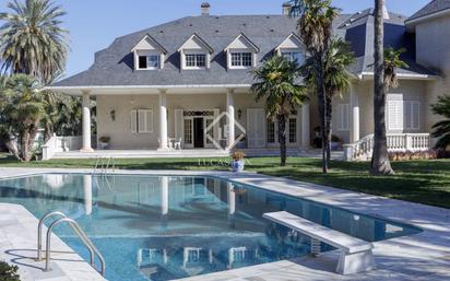 Lucas Fox presenta esta lujosa casa con una gran calidad constructiva y una cuidadosa selección de materiales en venta en La Eliana. La exclusiva villa destaca por ubicarse sobre una parcela de casi 40.000m2, rodeada de extensos campos de naranjos y múltiples palmeras de diferentes especies. Se encuentra en un entorno natural, alejado del bullicio de la ciudad, pero excelentemente conectado y a tan solo 25 kilómetros de Valencia. De hecho, a menos de un kilómetro, se encuentra una estación de metro y a menos de tres kilómetros, las poblaciones de La Eliana y Pobla de Vallbona. La propia casa tiene una vivienda auxiliar integrada, de más de 70m2 que dispone también de un acceso independiente desde el exterior Un camino privado rodeado de palmeras y vegetación que atraviesa los campos de naranjas nos lleva a la casa. En la entrada, nos da la bienvenida un espectacular recibidor de entrada con suelos de mármol, techos altos y vidrieras de colores con una bonita escalera que nos conduce a la planta superior. El acceso a las estancias principales de la casa está a la derecha. Cada estancia es espectacular por su espacioso tamaño y por la calidad de sus elementos. La distribución de la planta principal cuenta con gran salón con chimenea, un comedor también con chimenea y una sala de estar con vistas al jardín y la piscina. A continuación, se dispone la cocina con un encantador techo con vigas de madera. También goza de buenas dimensiones y cuenta con zona de lavadero y acceso al exterior, cerca del área de barbacoa. Subiendo las escaleras llegamos a la zona de noche con cinco dormitorios de gran tamaño con sendos baños privados, vestidores y fantásticas vistas al horizonte de los campos de naranjos y palmeras desde sus ventanas. En esta planta también tenemos otro dormitorio doble con baño privado, un dormitorio doble y un baño completo. La planta baja dispone de una amplia sala con barbacoa donde disfrutar de fiestas con amigos, una bodega, un baño y un espacioso despacho-biblioteca. Esta planta enlaza con el garaje, con capacidad para más de cuatro vehículos y con varias estancias para almacenamiento y la zona técnica. Todas las plantas de la casa están conectadas también por ascensor. El exterior es realmente espectacular, ya que ofrece grandes espacios y zonas con césped, vegetación y palmeras. Además, se beneficia de contar con dos piscinas, una zona de barbacoa y una pérgola gigante; todo ello rodeado de la gran extensión de campos de naranjos que circundan la casa. Le invitamos a concertar una visita personalizada a esta vivienda especial para poder disfrutarla y apreciarla con todo detalle.