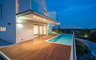 ^**^MAGNÍFICO CHALET DE DISEÑO EXCLUSIVO CON PISCINA DESBORDANTE Y VISTAS PANORÁMICAS^**^ Este espectacular chalet de tres plantas combina una arquitectura muy especial con espacios pensados para disfrutar tanto de la intimidad como de la vida en común. Su diseño único integra a la perfección interiores amplios y luminosos con exteriores llenos de encanto, donde la piscina desbordante y las terrazas se convierten en protagonistas. La vivienda se organiza en tres alas bien diferenciadas, cada una presidida por un dormitorio en suite con grandes ventanales y terrazas privadas que ofrecen unas vistas de ensueño. La privacidad de cada miembro de la familia está garantizada, a la vez que las zonas de día se convierten en el punto de encuentro perfecto para compartir momentos. En la planta principal encontramos la entrada a un amplio y luminoso salón-comedor con techos de doble altura, grandes cristaleras y salida directa al solárium y a la piscina. La cocina, moderna y funcional, dispone de isla central, espacio para mesa de desayuno y acceso directo a una terraza exterior. En esta misma planta se ubican también un aseo de cortesía y un dormitorio en suite con vestidor. La planta superior está dedicada al descanso. Una zona distribuidora central con salida a terraza puede destinarse a sala de estar o despacho. Aquí se encuentran tres dormitorios en suite con vestidor, destacando el principal. Este dormitorio está concebido en dos ambientes separados por una escalera interior: la parte superior funciona como zona de descanso con una pared acristalada y vistas espectaculares, mientras que en la parte inferior se encuentra el fabuloso baño principal. Este baño de diseño cuenta con sauna, hidromasaje, ducha y un gran vestidor, al que también se accede desde la planta baja. La planta baja ofrece un gran garaje, un apartamento independiente con cocina-comedor, dormitorio y baño, además de cuarto de calderas y varias estancias de almacenamiento. El jardín, al igual que la vivienda, impresiona por su diseño y amplitud, con diferentes ambientes que se funden con las vistas panorámicas al entorno natural. La tranquilidad está asegurada gracias a la escasa densidad de vecinos en la zona. Este inmueble reúne elegancia, amplitud y exclusividad en un entorno privilegiado, perfecto para quienes buscan una vivienda única. Este anuncio no es vinculante y puede contener errores. Se muestra a título informativo y no es contractual.