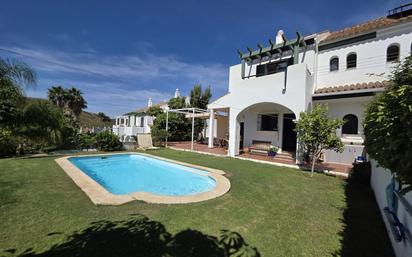 Interesante casa pareada situada en una bonita parcela de casi 400 m², esta casa esta lista para entrar a vivir y muy bien cuidada. Acogedor y amplio salón-comedor luminoso con una chimenea que cubre tanto el comedor como la sala de estar. Tenemos un baño completo en planta baja y una gran cocina con salida al jardín privado, donde cada día se puede disfrutar de reuniones entre amigos y familiares al aire libre rodeado de jardines bonitos y de una piscina privada con la perfecta orientación que le proporciona sol durante todo el día al igual que vistas agradables a la zona del parque del Goleto. En la segunda planta tenemos tres amplias habitaciones con bastante espacio de almacenamiento con cada una un baño en suites. La vivienda tiene parking privado y preinstalación de aire acondicionado. Una vivienda con todas las comodidades entre Sotogrande y Estepona, cerca de supermercados y a tan solo 1500m de las bonitas playas de la Costa del Sol y a tan solo 3 minutos en coche del Puerto de la Duquesa. No la dejes pasar y pide su visita ya... [IW]