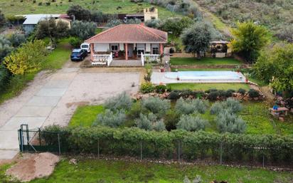 Chalet en venta en Medellín en la urbanización Quinto Cecilio. Con una parcela de 2300 m2, casa de 120 m2 distribuidos en 3 habitaciones, 2 baños, salón comedor con chimenea y cocina equipada . Piscina, zona de aparcamiento, porche, cenador, zona para animales... Infórmese en Calle Villanueva, 10 de Don Benito, en el 924811501 o en www.diestroinmobiliaria.com