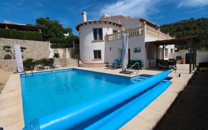 Esta villa ha sido renovada con los más altos estándares de calidad por sus actuales propietarios. Su ubicación, a pesar de estar en una urbanización, es muy solicitada por sus fantásticas vistas y tranquilidad, y además se encuentra en una calle sin salida. La villa consta de dos viviendas independientes y puede alojar hasta 12 personas si se desea. La planta superior consta de recibidor, 3 dormitorios y dos baños (uno de ellos en suite), un amplio salón-comedor y una moderna cocina de planta abierta. El salón da acceso a una naya cubierta (semicerrada) y a una amplia terraza con fantásticas vistas al valle y al Coll de Rates. La vivienda de la planta baja se distribuye de la siguiente manera: salón-comedor, cocina, recibidor, trastero, lavadero, dos dormitorios y un baño familiar. También hay un espacioso sótano para almacenamiento y un espacio extra que alberga los termos para agua caliente. La villa ofrece numerosos extras como paneles solares, aire acondicionado frío/calor, piscina climatizada, aislamiento especial en los muros, pérgola con caseta de jardín, un hermoso jardín mediterráneo con árboles frutales y muchos más.