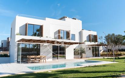 Exclusiva Villa de Lujo en Son Gual Diseño contemporáneo, vistas panorámicas y una ubicación inmejorable En un amplio solar de 2.007 m², se alza esta impresionante villa de lujo de 400 m², donde la elegancia moderna se combina con el confort más exclusivo y unas vistas espectaculares a la Sierra de Tramuntana La propiedad se distribuye en planta baja, primera planta, sótano polivalente y un espectacular rooftop, todos ellos conectados mediante ascensor para ofrecer la máxima comodidad. En la planta baja, encontramos una amplia habitación con acceso directo al jardín, un elegante salón-comedor y una cocina de diseño totalmente equipada con electrodomésticos Miele. Los grandes ventanales inundan el espacio de luz natural y permiten disfrutar de una conexión perfecta con el exterior, donde destaca un magnífico jardín con piscina y vistas abiertas a la naturaleza. La primera planta alberga tres dormitorios en suite, todos con salida a una espaciosa terraza. La suite principal ofrece una estancia amplia y luminosa, baño privado y acceso a su propia terraza privada, ideal para disfrutar del amanecer o el atardecer con total privacidad. Desde el rooftop, se pueden contemplar vistas panorámicas de 360° que abarcan la bahía de Palma y la Sierra de Tramuntana, un lugar perfecto para relajarse y disfrutar del entorno. En la planta sótano, se encuentra un espacio polivalente que incluye una elegante bodega, una coladuría equipada con lavadora y secadora Miele, y un área versátil ideal para una sala de cine, gimnasio o zona de ocio. Además, la vivienda cuenta con un garaje con capacidad para varios vehículos. Esta villa está situada en una zona donde se respira tranquilidad, rodeada de naturaleza y con la comodidad de estar a tan solo 15 minutos de Palma. Es el lugar perfecto para los amantes del golf, ya que se encuentra junto al prestigioso campo de Golf de Son Gual. La promoción se entrega totalmente amueblada y con el diseño paisajístico del jardín finalizado, ofreciendo una residencia lista para disfrutar desde el primer día. Un hogar donde cada detalle ha sido pensado para ofrecer un estilo de vida excepcional, combinando lujo, confort y serenidad en un entorno incomparable. ¿Te imaginas viviendo aquí?