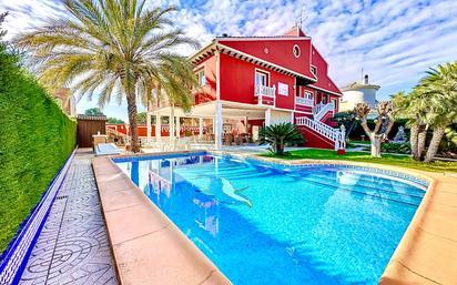 ¡Bienvenidos a esta impresionante villa independiente en la exclusiva zona costera de Campoamor, Orihuela Costa! Si alguna vez soñaste con vivir a escasos metros del mar Mediterráneo y disfrutar de algunas de las mejores playas de la Costa Blanca, esta es tu oportunidad única. Ubicada en una de las zonas más cotizadas y tranquilas, esta propiedad no solo te ofrece la proximidad al mar, sino también un sinfín de detalles que harán que cada rincón se sienta como tu hogar ideal. La villa se erige sobre una parcela amplia, donde podrás deleitarte con una fabulosa zona de barbacoa para disfrutar de deliciosas veladas al aire libre, una refrescante piscina privada para relajarte bajo el sol y una barra perfecta para tus cócteles preferidos. Además, un rincón con una hermosa fuente te invitará a desconectar y relajarte, creando una atmósfera única para tus días más tranquilos o después de una jornada ajetreada. Distribuida en tres plantas y con una bodega privada espectacular, esta propiedad ha sido diseñada con un gusto exquisito y unos acabados tallados a mano, que le dan un carácter especial y una gran personalidad. La bodega, única en la zona, cuenta con su propia sala de estar, cocina y aseo, creando un espacio versátil que podrás utilizar a tu gusto: desde un área para eventos hasta un espacio de descanso privado. En la primera planta, encontramos un espacio diáfano que integra perfectamente las áreas comunes, y un garaje de gran tamaño con capacidad para tres coches. Además, dispone de un aseo privado, pensado para la comodidad de todos los miembros de la familia. La segunda planta es el alma de la casa, con una estancia principal que cuenta con dos amplios salones-comedores, ambos con acceso directo a una terraza soleada, perfecta para disfrutar de un libro por la mañana o para compartir cenas especiales bajo las estrellas. La cocina independiente está completamente equipada y cuenta con un diseño exclusivo que la convierte en un lugar funcional y elegante. Además, este nivel ofrece un baño principal con un toque costero que conecta perfectamente con el ambiente relajado y un baño en suite, y tres habitaciones que comparten una terraza con vistas al jardín y al entorno natural que rodea la propiedad. Subiendo a la última planta, nos encontramos con un amplio salón de lectura, juegos o descanso, ideal para disfrutar de los momentos más relajantes. Aquí también se encuentran dos habitaciones, una de ellas con acceso a una terraza privada que te ofrecerá vistas inigualables, así como un baño completo con un acabado igualmente sofisticado. Cada rincón de esta villa está pensado para proporcionarte no solo comodidad, sino una experiencia de vida única en uno de los lugares más privilegiados de la Costa Blanca. ¿Te imaginas despertando cada día con el sonido del mar, disfrutando de la brisa mediterránea en tu terraza privada y viviendo en una propiedad de lujo como esta? ¡No dejes pasar la oportunidad de hacerla tuya! Visita esta villa y déjate cautivar por sus detalles, su ubicación inmejorable y la calidad de vida que te ofrece. ¡Estamos aquí para ayudarte a dar el siguiente paso hacia la casa de tus sueños!