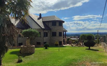 Vivienda unifamiliar de tres plantas ubicada en la zona de Ribasaltas. Es una zona muy tranquila, con muy buenas vistas. La vivienda cuenta con cocina, dos salones, cinco habitaciones, tres baños, bodega, cuarto de limpieza y amplia buhardilla habitable. Tiene calefacción de gasoil, chimenea y cocina de leña. En el exterior hay un amplio porche con zona de churrasco y además, garaje para dos coches, bodega y varios alpendres. Tiene una amplia zona verde con regadío automático, pozo de barrena de agua potable para consumo propio, huerta y viñedo.