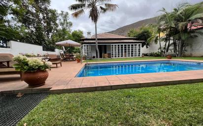 Chalet independiente en apacible urbanización de la Orotava. Se compone de un recibidor, una cocina con comedor de diario muy luminosa. Tiene 3 dormitorios dobles, el principal con armarios empotrados y baño en suite, para los otros dos dormitorios existe un segundo baño espacioso y con luz natural. Salón y el comedor separados por un arco y tiene chimenea. Desde el comedor se accede a un porche que se puede cerrar o abrir según la estación dando a la piscina, jardín y zona solarium de la vivienda. Se completa con un garaje para dos coches, también tiene rampa privada donde poder estacionar más vehículos, además de lavadero y un pequeño apartamento de invitados con el dormitorio separado. Trastero y cuarto de máquinas de la piscina. Situado en un entorno privilegiado, con muy buena conexión a la Autopista Norte.