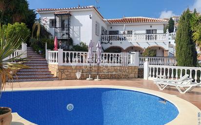 Espectacular Villa en Nerja 5 Dormitorios, Piscina Privada y Vistas Panorámicas Si busca una villa amplia con una ubicación privilegiada, ¡esta es su oportunidad! Situada en la exclusiva zona de Punta Lara, esta impresionante propiedad ofrece vistas panorámicas al mar, la montaña y la encantadora ciudad de Nerja. Con múltiples terrazas orientadas en todas las direcciones, podrá disfrutar del sol desde el amanecer hasta el atardecer en un entorno idílico. Distribución de la Villa: Nivel Principal: Cocina moderna totalmente equipada con comedor independiente. Gran salón con chimenea, acceso a la terraza y vistas espectaculares. Tres dormitorios en suite con salida directa a la terraza. Nivel Inferior (Semisótano): Apartamento independiente perfecto para invitados o alquiler. Amplio salón, dos dormitorios y un baño completo. Conexión directa con la planta principal. Exterior y Extras: Zonas ajardinadas con árboles frutales maduros. Espacio de barbacoa ideal para reuniones y celebraciones. Piscina privada con solárium y vistas inigualables. Esta propiedad es perfecta tanto como hogar familiar como para inversión en alquiler vacacional. Además, cuenta con permiso para ampliar hasta 250 m2 adicionales, brindando la oportunidad de personalizarla a su gusto. Contáctenos hoy mismo para más información o para organizar una visita. ¡No deje escapar esta joya en la Costa del Sol!