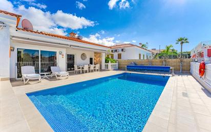 Exclusiva villa de alto nivel ubicada en una de las zonas más valoradas del sur de Tenerife, con vistas abiertas al océano y a las montañas. Una propiedad concebida para ofrecer una experiencia residencial donde confort, elegancia y privacidad se combinan a la perfección. La vivienda dispone de seis amplios dormitorios en suite, todos con aire acondicionado y baños completamente renovados, diseñados con un estilo contemporáneo y materiales de alta calidad. El espacio principal de la casa lo ocupa un salón de concepto abierto, perfectamente integrado con el comedor y una cocina moderna totalmente equipada, creando un ambiente luminoso y funcional, ideal para el día a día y para recibir invitados. En el exterior, la terraza orientada al suroeste, equipada con toldos eléctricos, ofrece el entorno perfecto para disfrutar del clima privilegiado de la isla y de espectaculares puestas de sol. La zona exterior se completa con una piscina climatizada de agua salada y amplias zonas de solárium, pensadas para el descanso y el disfrute con total privacidad. Garaje cerrado para dos vehículos y espacio de aparcamiento adicional dentro de la parcela.