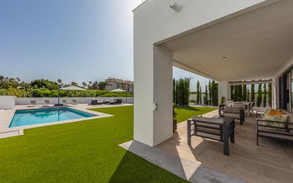 Magnífica villa de estilo contemporáneo, de reciente construcción y construida utilizando materiales de alta calidad. Ofrece preciosas y relajantes vistas al mar y a zonas verdes. En impecables condiciones y excepcionalmente ubicada en una tranquila urbanización con supermercados, restaurantes, gimnasio, peluquería y otros servicios a solo 200 metros, a 800 metros del atractivo Puerto de la Duquesa y a 500 metros de las magníficas playas de Manilva, mientras que el animado pueblo de Sabinillas, con todo tipo de comercios, se encuentra a 1,5kms. Gracias a su orientación sudeste, disfruta de sol durante todo el día y vistas al amanecer cada mañana. La propiedad se distribuye en dos plantas y cuenta con un amplio garaje de 46 m² para dos vehículos, que está situado a la entrada de la vivienda, además posee un gran trastero de 15m². Dispone de un gran salón-comedor con acceso a un espacioso porche con facilidad de cerrarlo con cortinas de cristal. Los dormitorios, todos amplios, disfrutan de abundante luz natural y privacidad. Entre sus excelentes calidades destacan el suelo radiante en toda la vivienda, sistema de filtrado de agua de alta calidad con bomba de presión, persianas y estores eléctricos, mosquiteras en todas las ventanas y sistema de domótica. El jardín es muy privado y cómodo de mantener gracias a su césped artificial de alta calidad, y cuenta con piscina, iluminación exterior y una agradable zona chill-out, ideal para el descanso y el disfrute al aire libre. Esta villa es una gran oportunidad difícil de igualar; recomendamos altamente su visita.
