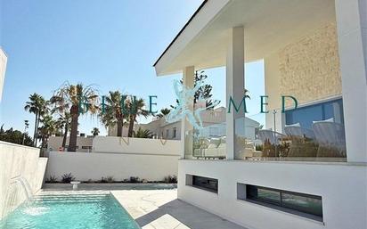 Te presentamos una extraordinaria villa de obra nueva en Veneziola, situada en una de las zonas más exclusivas de La Manga del Mar Menor. Esta propiedad, ya finalizada y con entrega inmediata, representa una oportunidad única para comenzar una nueva vida junto al mar sin esperas. Diseñada con un estilo moderno y sofisticado, esta villa destaca por sus líneas arquitectónicas elegantes, amplios espacios abiertos y una cuidada selección de materiales de altísima calidad. La vivienda se levanta sobre una parcela privada de 612 metros cuadrados y cuenta con una superficie construida de 402 metros, distribuidos en estancias luminosas y perfectamente orientadas para aprovechar la luz natural. El interior de la casa ofrece cuatro dormitorios, dos de ellos con baño en suite, tres baños completos y un aseo de cortesía. La cocina, de diseño contemporáneo, está equipada con una zona de lavandería independiente y conecta con un salón-comedor amplio y acogedor, donde los grandes ventanales ofrecen vistas al jardín y permiten una integración perfecta entre interior y exterior. En la planta sótano se encuentra un amplio garaje con espacio suficiente para varios vehículos, y que además puede transformarse en una vivienda adicional, un gimnasio privado o una sala de ocio, según las necesidades del futuro propietario. La propiedad ha sido construida pensando en la sostenibilidad y el confort, con un sistema de aerotermia de alta eficiencia energética, paneles solares y climatización por aire acondicionado y calefacción central. En el exterior, la villa cuenta con una espectacular piscina de diseño que incluye cascada, zona de hidromasaje, área tipo playa y preinstalación para bomba de calor, creando un auténtico oasis privado. Ubicada a tan solo 25 metros del mar, esta villa ofrece la tranquilidad de Veneziola con acceso inmediato a playas vírgenes, puertos deportivos, restaurantes y todos los servicios necesarios. La propiedad se vende sin amueblar, aunque existe la posibilidad de adquirirla completamente equipada tal como aparece en las imágenes, con un precio total de 1.335.000 €. Una residencia única, lista para entrar a vivir, que reúne lujo, confort y ubicación privilegiada en un entorno inigualable. Llámanos y concertamos una visita: BLUE MED INVEST +34 968 595 684 www.bluemedinvest.com REF: MANGAVENEZIOLA