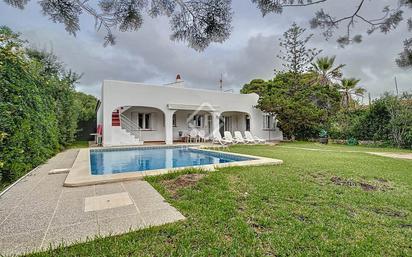 Lucas Fox presenta esta villa en planta baja de 160 m² con derecho a vuelo de 24 m² sobre una parcela de 614 m² y con licencia turística. Se encuentra en la urbanización de Cala'n Bosch, en el término municipal de Ciutadella de Menorca, a pocos metros del puerto deportivo y de la playa. La vivienda nos da la bienvenida con una entrada que da acceso a la zona de día donde encontramos una moderna cocina abierta que resulta muy funcional y están completamente equipada. Se abre a un confortable salón-comedor con chimenea, ideal para las noches de invierno, que cuenta con salida al porche cubierto donde tenemos un baño exterior. Al otro lado de la entrada, un pasillo distribuidor nos lleva a la zona de noche donde tenemos tres dormitorios dobles, dos de ellos con armarios empotrados que comparten un baño con acabados de microcemento. En la parte delantera de la casa encontramos un garaje/trastero ideal para motos y bicicletas. La vivienda se reformó recientemente y cuenta con ventiladores de techo en todas las estancias para garantizar un mejor confort durante todo el año, carpintería exterior oscilobatiente de PVC con doble acristalamiento, persianas exteriores menorquinas también de PVC, alarma, wifi y riego automático. En el exterior, tenemos una amplia zona ajardinada con barbacoa, perfecta para relajarse al aire libre, una piscina de 34 m² y unas escaleras que nos llevan a la terraza con vistas alejadas al mar y donde se podría construir un espacio de 24 m². Sin duda una propiedad ideal para vivir todo el año o pasar temporadas con familia y/o amigos, además de poder alquilarla turísticamente al disponer de licencia turística. Póngase en contacto con nosotros para más información o para concertar una visita.