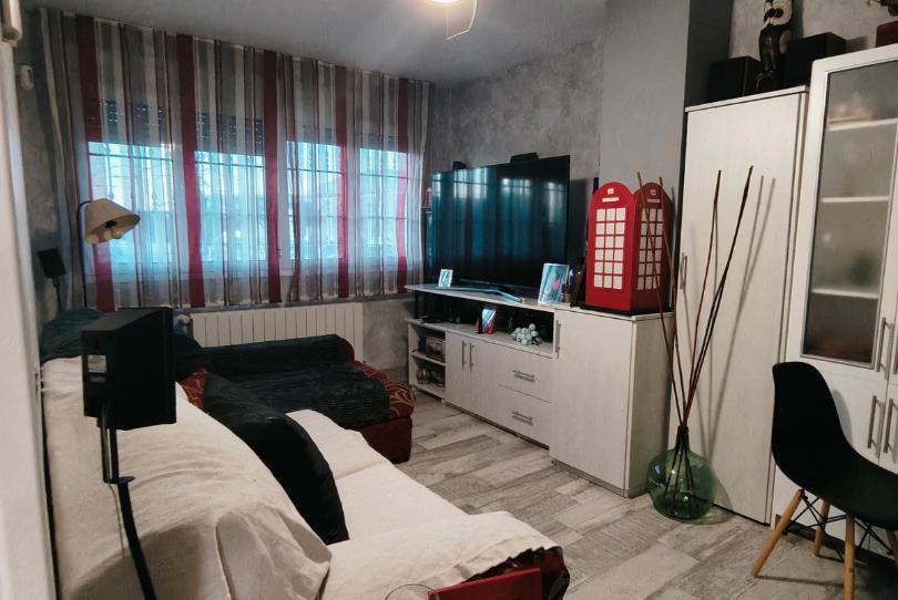 Calefacción individual con gas natural, suelo porcelanico imitacion a tarima, puertas blancas y ventanas de climalit.