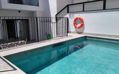 Adosado de alquiler en Nerja ( Solo meses de Invierno) con 120 m2, 3 dormitorios, 2 baños, aseo, salón-comedor, cocina equipada, amueblado, terraza privada, piscina privada, solárium con barbacoa, aire acondicionado, esta en pleno centro de Nerja.