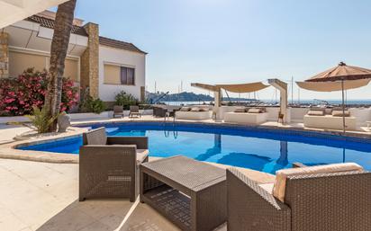 Esta casa adosada se encuentra a unos pasos de tiendas, bares y restaurantes directamente al lado de la marina de Cala Nova. La vivienda se reparte en tres niveles y tiene 4 dormitorios y 3 salones, cada uno consta con su propia cocina. Además cuenta con un solarium con vistas a la marina y a la Bahía de Palma. La casa es ideal tanto para vivir en familia como para ser compartida. La comunidad consta sólo de tres casas que comparten una piscina con espacio de bar y relax. Muy cerca se encuentran colegios internacionales y calas románticas. Otras características: calefacción central, suelo radiante en los baños, lavadora, internet, TV satélite. La casa se vende amueblada. Plaza de parking opcional.