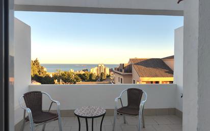 ALQUILER DE LARGA TEMPORADA de Casa Adosada en Montemar Alto - ¡Tu nuevo hogar te espera! Descubre esta encantadora casa adosada de 3 plantas en la codiciada zona de Montemar Alto, ideal para quienes buscan un hogar acogedor y funcional. Con 92 m² construidos, esta propiedad cuenta con un pequeño hall de entrada que da paso a un luminoso salón, perfecto para disfrutar de momentos en familia. Desde aquí, accede a una amplia terraza equipada con toldos, donde podrás relajarte y disfrutar del sol. La cocina independiente, completamente equipada y con dos ventanas, es ideal para los amantes de la gastronomía. En la primera planta, encontrarás dos cómodos dormitorios. El dormitorio principal destaca por su baño en suite con bañera y un balcón que ofrece vistas al mar, mientras que el segundo dormitorio tiene acceso a un baño con ducha. La segunda planta es un espacio versátil que puede usarse como dormitorio adicional o despacho, y también cuenta con acceso a otra amplia terraza con vistas al mar, perfecta para disfrutar de amaneceres inolvidables. La casa incluye una amplia plaza de garaje con acceso por portón motorizado y mando a distancia, además de estar situada en una comunidad con piscina. A tan sólo 650 metros de la Playa de la Carihuela, a un kilómetro del Hipermercado Carrefour y a 550 mtrs de RENFE cercanías Montemar, tendrás todo lo que necesitas a tu alcance. Recuerda que se requiere contrato de trabajo fijo para alquilar y no se admiten mascotas. 2 meses de fianza. ¡No pierdas la oportunidad de vivir en este maravilloso hogar!