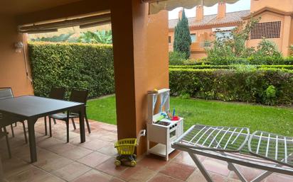 Se alquila para larga temporada, no agencias inmobiliarias porfavor, Planta baja en la urbanización Benatalaya, ubicada junto al famoso golf club, colegios y al lado de todo los servicios en pleno Triángulo de Oro de Marbella. La vivienda dispone de dos dormitorios, dos baños, jardín privado y plaza de parking. Se alquila únicamente a inquilinos serios, con pagos demostrables y referencias. Se pide mes de honorarios de agencia y fianza. Ideal para quienes buscan tranquilidad, buena ubicación y calidad de vida