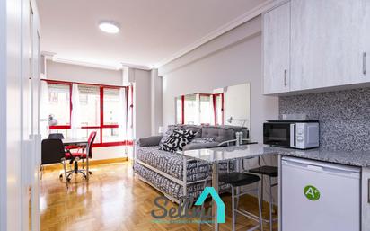 DISPONIBLE PARA EL CURSO MIR (consultar disponibilidad). Estudio en alquiler en zona Seminario-Campillín, Oviedo (Asturias, España). Precio: 600 € al mes (comunidad incluida). Superficie construida: 30 m². 4ª planta exterior. Estudio amueblado en alquiler situado junto al Seminario y a un paso de los Jardines del Campillín, en Oviedo. La vivienda se encuentra en un edificio con ascensor. Orientación oeste. Tiene una superficie construida de 30 m² distribuidos en hall de entrada, salón con sofá cama, cocina amueblada y amueblada y un baño completo. Dispone de suelos de parquet y gres, ventanas de doble acristalamiento, calefacción eléctrica, puerta de seguridad, etc. Se incluye wifi en el precio. No admite mascotas. Un mes de fianza más un mes de honorarios de agencia.
