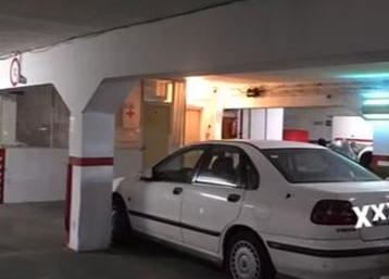 Una sola planta. Delante de la garita del vigilante. Coche mediano. Scenic o similar.