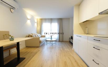 CM Properties presenta este acogedor y moderno piso de una habitación, con diseño cálido y contemporáneo que invita a disfrutar de cada espacio. Al entrar, te recibe un luminoso salón con amplios ventanales que permiten la entrada de luz natural, creando una atmósfera relajante y elegante. Los suelos y el mobiliario en tonos neutros aportan armonía, mientras que los detalles decorativos y las mesas de diseño completan un ambiente sofisticado y confortable. El dormitorio continúa con la misma línea estilística, ofreciendo un espacio sereno y acogedor, tipo hotel boutique. Cuenta con una cama amplia vestida con textiles de calidad, iluminación colgante de diseño y una decoración equilibrada que invita al descanso. La cocina, de estilo minimalista y totalmente integrada, destaca por su funcionalidad. Equipada con armarios de líneas limpias y una encimera práctica, aprovecha de forma óptima el espacio. Este piso también cuenta con un cómodo rincón de trabajo que ofrece un entorno ideal para personas que trabajar desde casa. En conjunto, esta vivienda se presenta como una opción perfecta para quienes buscan diseño, comodidad y un hogar listo para entrar a vivir, con acabados de alta calidad y una atmósfera equilibrada y moderna. Si este piso encaja con lo que buscas, no dudes en contactarnos y pedir una visita.