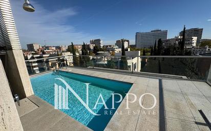Nappo Real Estate ofrece este excelente tríplex con piscina privada y vistas 360 a todo Madrid. Ubicado en pleno Viso, barrio exclusivo de Madrid, conocido por sus elegantes chalets y amplias avenidas. Un refugio de paz, conectividad, seguridad y prestigio. Al acceder a la vivienda, nos recibe un amplio y luminoso espacio abierto que integra un elegante salón y una moderna cocina de concepto abierto, incluyendo un aseo de cortesía y zona de lavadero. El salón conecta directamente a una gran terraza con orientación sureste que ofrece luminosidad durante todo el día y vistas despejadas. El verdadero valor diferencial se encuentra en la planta superior: una impresionante azotea con piscina privada, solárium y vistas panorámicas de 360 grados al skyline de Madrid. La planta inferior alberga la zona de noche, diseñada para el descanso y la privacidad: una habitación principal de grandes dimensiones con amplio vestidor y baño en suite con jacuzzi, dos dormitorios amplios con grandes armarios y un baño compartido, y un cuarto dormitorio con baño en suite, ideal para servicio o despacho. La vivienda cuenta con sistema de Aerotermia para máxima eficiencia, suelos en madera noble y un extraordinario almacenaje debido a sus amplios armarios empotrados. La cocina está equipada con electrodomésticos premium y elegantes encimeras de piedra natural, mientras que los baños deslumbran por su mármol. Incluye amplias plazas de garaje con capacidad para 4 vehículos con punto de carga eléctrica, un generoso trastero y personal de servicio encargado del mantenimiento de la piscina privada. La comunidad cuenta con vigilancia y conserje. El Viso, tranquilidad residencial con acceso inmediato al eje financiero del Paseo de la Castellana y el Estadio Santiago Bernabéu. La zona ofrece una vida cómoda y sofisticada, con proximidad a restaurantes selectos, boutiques, colegios de prestigio y excelentes conexiones con la M-30. No dejes escapar la oportunidad de vivir en este precioso triplex en una de las mejores zonas de Madrid! Contacta con Nappo Real Estate para agendar una visita!