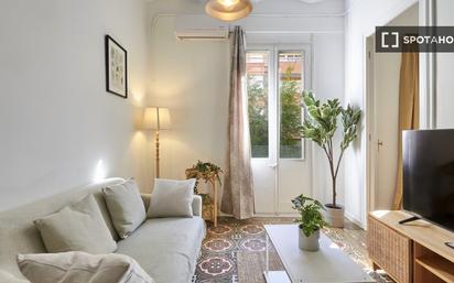 Apartamento amueblado de 1 dormitorio en alquiler en Passatge De Nogués. La propiedad incluye lavadora, cocina equipada, balcón y tv. Bienvenido a este acogedor apartamento de un dormitorio ubicado en el encantador barrio de Gracia, en Passatge Nogués, Barcelona. Con un generoso espacio de 60 metros cuadrados en el primer piso, este apartamento puede alojar cómodamente hasta dos huéspedes, ofreciendo un refugio relajante en una zona vibrante de la ciudad. El dormitorio principal cuenta con una cómoda cama tamaño queen, lo que proporciona un ambiente tranquilo y sereno con un amplio espacio de guardarropas para pertenencias personales. La sala de estar lo invita a relajarse en un cómodo sofá y está equipada con un televisor inteligente de 50 pulgadas para disfrutar de su serie favorita. Adyacente a la sala de estar, el comedor tiene espacio para tres personas, ideal para cenas íntimas o trabajo informal. Desde la sala de estar, se abre un balcón privado, perfecto para disfrutar del aire fresco o un café por la mañana. La cocina está completamente equipada, ofreciendo todas las comodidades para una estancia práctica: frigorífico, placa de inducción, microondas y horno, además de copas de vino, cafetera Nespresso, tostadora y hervidor de agua. Perfecta tanto para preparar comidas caseras como para disfrutar de un tentempié rápido. El baño cuenta con una amplia ducha, artículos de aseo esenciales y agua caliente para una experiencia refrescante. Para estancias prolongadas, los huéspedes pueden acceder a la lavadora, secadora, tendedero y plancha, mientras que el WiFi de alta velocidad y el aire acondicionado garantizan comodidad y conectividad. Está prohibido fumar y celebrar fiestas para mantener un ambiente tranquilo en este bonito y céntrico apartamento de Barcelona.