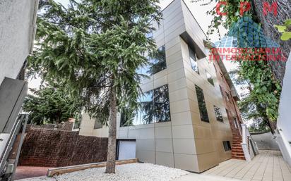 La inmobiliaria internacional CPM gestiona este espectacular chalet adosado sin amueblar, (actualmente utilizado como oficinas), de 485 m2, 5 habitaciones, y jardín propio, próximo al metro Lacoma; que se distribuye de la siguiente manera: Planta entrada: Hall de entrada. Una cocina con office, completamente equipada, con todos los electrodomésticos incluidos. Un amplio salón comedor muy luminoso, con grandes ventanales, que dan salida directa al jardín. Un aseo de cortesía Primera planta: Un amplio pasillo distribuidor. 3 habitaciones muy luminosas, con grandes armarios empotrados y grandes ventanales; la principal, en suite, con su baño completo integrado. Un baño completo. Segunda planta abuhardillada: Un amplio y luminoso salón, con acceso a una terraza, con estupendas vistas de la zona. Un baño completo. Planta semisótano: Plazas de garaje. Almacén. Un despacho. Sala de la calderas. Una habitación. La vivienda sin amueblar, dispone de suelo de parquet de madera natural, jardín, puerta blindada, calefacción por suelo radiante por caldera de gas natural, aire acondicionado, paneles solares para agua caliente y ventanas con climalit. Sobre la ubicación del inmueble, es inmejorable, ya que se encuentra cercano a la entrada del metro de Lacoma. Paradas de taxis y diferentes líneas de autobús paran enfrente de la vivienda. El Acceso a la M-30 Y M-40 es muy rápido. Alrededor del dúplex se encuentran varios centros comerciales (La Vaguada, El Corte Inglés), colegios (Colegio Alemán Montecarlo, Colegio Bravo Murillo, Colegio Alhambra, Colegio San Rafael Arcángel), guarderías, parques (Centro Nacional de Golf, Parque de Ana Tutor, Parque de Arroyo del Fresno), farmacias, hospitales (Hospital Ruber Internacional, Hospital Ramón y Cajal, Hospital Carlos III) y variedad de restaurantes.