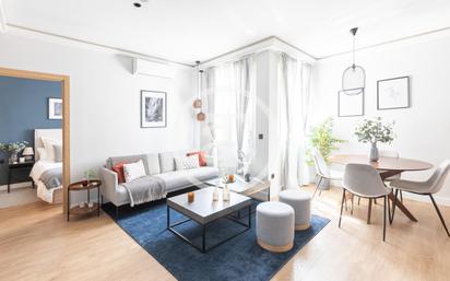 Disponible a partir del 4 de abril de 2026. Apartamento de alquiler temporal (de 32 días a 11 meses) Este piso de alquiler temporal en Madrid, se encuentra en el barrio de Salamanca, en Fuente del Berro y combina comodidad, amplitud y una ubicación estratégica. Ofrece un amplio salón comedor con grandes ventanales que llenan el espacio de luz natural. La cocina abierta, integrada en el mismo ambiente, está completamente equipada con horno, microondas, lavavajillas, lavadora, nevera y todos los utensilios, ideal para quienes disfrutan de cocinar en casa con todo a mano. La zona de descanso incluye una habitación doble y armario empotrado, además de un estudio independiente, con sofá cama, perfecto para teletrabajar, leer o disponer de un espacio privado adicional. El baño cuenta con una práctica ducha y un diseño moderno y funcional. Este piso incluye aire acondicionado, calefacción y wifi de alta velocidad. Situado en una zona tranquila y residencial, el piso está rodeado de pequeños comercios, supermercados, panaderías y bares de toda la vida. A pocos pasos se encuentra el Parque de la Fuente del Berro, un pulmón verde ideal para paseos o para desconectar del ritmo urbano. Muy bien comunicado, encuentra próximo a la estación Manuel Becerra (líneas 2 y 6) a 8 minutos caminando y la estación de metro Ventas (líneas 2 y 5), a 12 minutos caminando, con varias líneas de autobús disponibles en las calles principales. Una opción cómoda y bien conectada para quienes buscan vivir Madrid con practicidad y estilo. Número de registro de la propiedad: ESFCNT00002810500031654300000000000000000000000000007