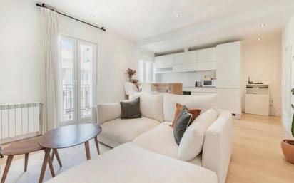 DISPONIBLE 1 DE FEBRERO. ABSTENERSE AGENCIAS. SIN AMUEBLAR (solo incluye cama con canapé de la habitación principal). IDEAL PAREJAS. Acogedor piso exterior en zona Trafalgar, en Chamberí, uno de los barrios más demandados de Madrid. Muy luminoso. Consta de un salón comedor con cocina americana, dos habitaciones, hall de entrada y amplio baño. Reforma integral con materiales de alta calidad, ventanas oscilobatientes de aluminio y tarima flotante. Tiene aire acondicionado y calefacción individual por caldera de gas natural. El salón, con cocina americana, cuenta con una ventana y un balcón a la calle. La cocina está totalmente equipada con muebles de diseño alemán y electrodomésticos de primeras marcas. Encimera de silestone, cubos de basura integrados en cajón, horno – microondas, lavavajillas y nevera integrada, vitrocerámica de inducción y campana extractora. La habitación principal es exterior y cuenta con un armario de tres cuerpos. La otra habitación da a un patio interior por el que entra mucha luz por ser la penúltima planta del edificio. El baño, muy amplio y con dos ventanas, está equipado con un gran plato de ducha con mampara Duscholux, WC y lavabo nuevos y un armario. En él también se encuentra la lavadora-secadora y la caldera para ganar espacio en la estancia principal. En la entrada hay un gran armario con altillo para tus necesidades de almacenaje. Finca con portero físico. Muy bien comunicado, a menos de 5 minutos de las estaciones de metro de Iglesia, Canal y Alonso Cano. A escasos dos minutos de la Calle Ponzano y a 5 minutos de la Plaza de Olavide.