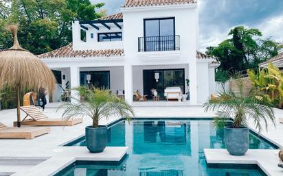 Ubicada en la prestigiosa zona de Parcelas del Golf en Nueva Andalucía, Marbella, esta villa de lujo ofrece un estilo de vida incomparable en la Costa del Sol. Con una superficie construida de 324m² y un terreno de 686m², esta propiedad se distingue por su elegancia y comodidad. La villa cuenta con cinco amplios dormitorios y cinco baños, lo que la convierte en una opción ideal para familias numerosas o para aquellos que disfrutan de recibir invitados. El interior de la villa ha sido recientemente renovado, asegurando un estado excelente y moderno. Entre sus características más destacadas se encuentran el aire acondicionado, calefacción por suelo radiante en toda la casa, incluyendo un sistema de aerotermia que mejora la eficiencia energética. La villa también está equipada con paneles solares, lo que refuerza su compromiso con la sostenibilidad. Para los amantes del deporte y el bienestar, la propiedad ofrece un gimnasio privado y acceso a una pista de tenis/pádel. La seguridad es una prioridad en esta villa, con un servicio de vigilancia las 24 horas, cámaras de seguridad, persianas de seguridad y una entrada protegida por video. El entorno de la propiedad es igualmente impresionante, con una piscina privada y un jardín que ofrecen vistas relajantes. La terraza privada y la zona de barbacoa son perfectas para disfrutar del clima mediterráneo durante todo el año. La ubicación de la villa es inmejorable, con proximidad a transportes, playas, campos de golf, tiendas, colegios y el puerto. Forma parte de una comunidad cerrada que garantiza privacidad y exclusividad. Esta propiedad no solo ofrece un hogar, sino un estilo de vida en una de las zonas más codiciadas de Marbella.