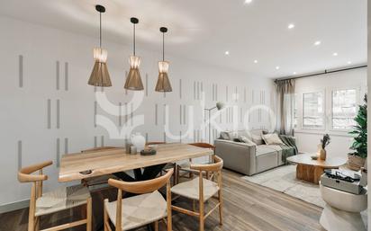 *COMPLETAMENTE AMUEBLADO* *ALQUILERES MENSUALES DE 1 A 11 MESES* Bienvenido a Canneti, un impresionante apartamento de 87 metros cuadrados en el barrio de La Sagrada Familia. Este apartamento le permite vivir muy cerca de una de las atracciones más famosas de Barcelona, mientras que proporciona una escapada residencial del bullicioso centro de la ciudad. Disfrute de la mezcla perfecta de confort moderno y elegancia playera, que le proporcionará una estancia inolvidable. Canneti cuenta con tres dormitorios, dos de ellos con camas de matrimonio que garantizan un sueño reparador. Uno de estos dormitorios cuenta con baño privado y una estación de trabajo, ideal para los huéspedes que trabajan a distancia o necesitan estar conectados. Un dormitorio individual adicional crea una experiencia de alojamiento cómoda y práctica para todos los huéspedes. El segundo cuarto de baño independiente tiene un diseño elegante y funcional. La distribución abierta conecta a la perfección el salón y la cocina, proporcionando un espacio acogedor y funcional. El salón cuenta con un sistema de entretenimiento y está cuidadosamente decorado con un tema de diseño playero, con lámparas tejidas y muebles de madera clara. El comedor adyacente ofrece un entorno perfecto para disfrutar de las comidas. La cocina, totalmente amueblada, está equipada con modernos electrodomésticos y utensilios esenciales, lo que facilita la preparación de deliciosas comidas. Disfrute del máximo confort con sistemas de aire acondicionado y calefacción en todas las habitaciones, que garantizan un ambiente agradable en cualquier estación del año. Totalmente amueblado, este apartamento viene con todo lo necesario, incluyendo ropa de cama y ropa de cama. *Los precios y la disponibilidad pueden variar según la duración de la estancia y la antelación de la reserva. Los servicios públicos y los gastos por mascotas no están incluidos en el precio del alquiler, todo se detallará en el contrato final. *El mobiliario y la decoración pueden diferir ligeramente de las fotos debido a mantenimiento y mejoras de calidad por nuestro equipo de diseño. *Para consultar precios actualizados, disponibilidad y todos los detalles del apartamento, visita nuestra web. Para cualquier duda, consulte con un agente de ventas. *El precio indicado se aplica únicamente a estancias destinadas exclusivamente a fines vacacionales, recreativos o de ocio.