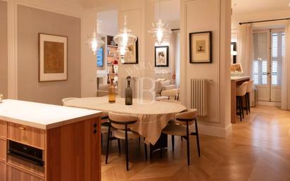 Barnes presenta este exclusivo piso completamente reformado con materiales de alto standing, ubicado en la prestigiosa calle Columela, en el corazón del barrio de Recoletos. La vivienda ha sido decorada por un reconocido estudio de interiorismo italiano y ofrece una combinación perfecta de diseño, confort y funcionalidad. Cuenta con amplias zonas de día, tres dormitorios dobles en suite, patio interior y espacios pensados para disfrutar y recibir invitados. La zona de día se articula en torno a un amplio salón principal con dos sofás, ideal para el descanso y la vida diaria, y un segundo salón más informal que incorpora una elegante barra alta, perfecta para reuniones sociales. El comedor independiente, con capacidad para ocho comensales, se integra de forma armoniosa con el resto de los espacios, creando una atmósfera sofisticada y acogedora. La cocina open plan es uno de los grandes protagonistas de la vivienda, con panelado de madera a medida y una espectacular isla de mármol que aporta carácter y exclusividad. Desde la cocina se accede directamente a un agradable patio interior, que también conecta con todas las estancias de la casa, aportando luz natural y una sensación de privacidad poco habitual en la zona. La zona de noche dispone de tres habitaciones dobles, todas ellas con baño en suite completamente equipados y listas para entrar a vivir. Los acabados, la iluminación y el mobiliario han sido cuidadosamente seleccionados para ofrecer el máximo confort. Además, la vivienda cuenta con un aseo de cortesía adicional, completando una propiedad única en una de las zonas más demandadas de Madrid.